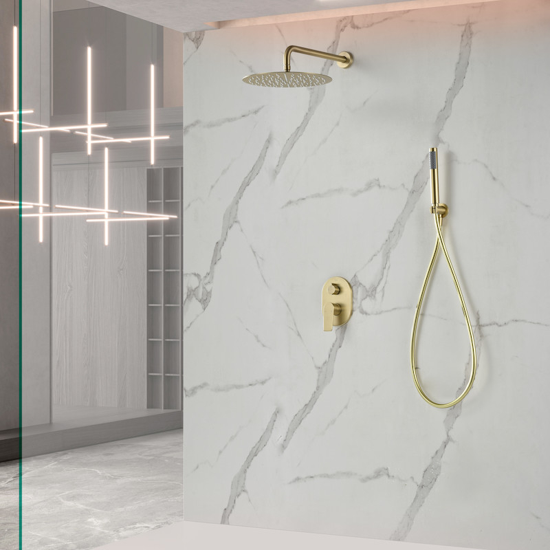 Kit de douche encastrable Flat mural rond en laiton