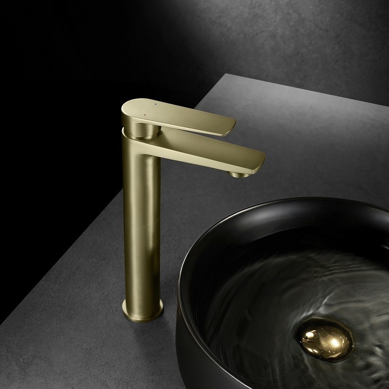 Le mitigeur de lavabo monocommande rehaussé Flat est une pièce maîtresse pour toute salle de bain moderne. Disponible en trois coloris distincts - chrome brillant, noir mat et doré brossé - ce robinet élégant allie esthétique et fonctionnalité.