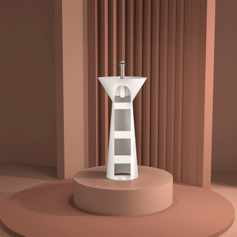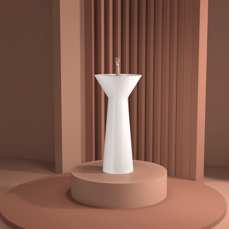 Ce qui fait l’originalité de ce lavabo sur pieds en céramique, c'est sa forme géométrique. La vasque étant plus large que le pied, ce totem sera confortable pour se laver les mains (sans mettre de l’eau partout) tout en restant ultra-compact.