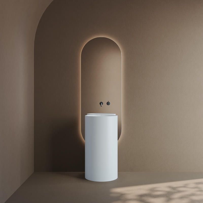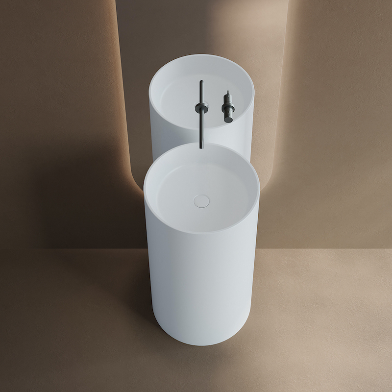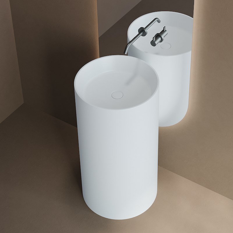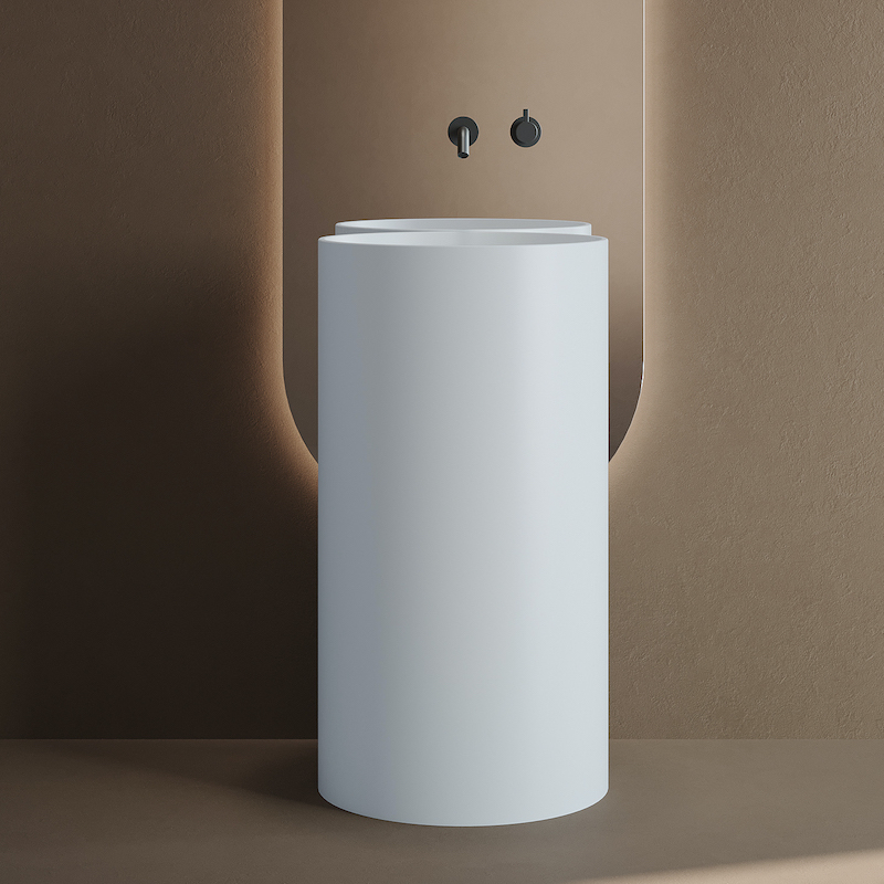 Avec son design arrondi et sa finition blanc mat, le lavabo colonne Rotondo en solid surface crée un point d’eau élégant et fonctionnel, facile à installer et simple à entretenir.
