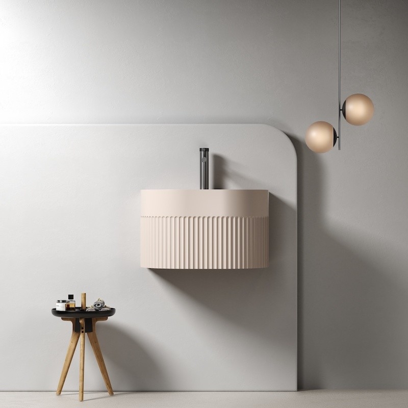 Découvrez Éclipse, un lave-main suspendu au design audacieux et raffiné, idéal pour sublimer vos espaces de toilette. Disponible en deux coloris élégants – blanc mat et beige argile mat – cette vasque se distingue par sa forme unique de demi-lune et sa paroi extérieure entièrement cannelée.