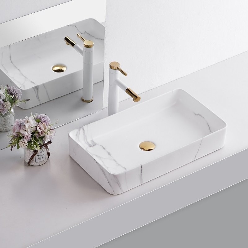 Vasque à poser rectangulaire effet marbre Marmo 60 cm