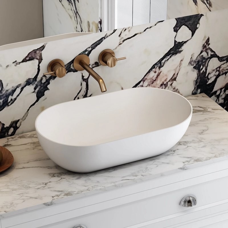 Cette vasque à poser Forma ovale blanche 56cm est un très bon choix pour une salle de bain moderne. Adieu les anciennes vasques encastrées en céramique et bonjour les vasques à poser en fonte minérale mate.