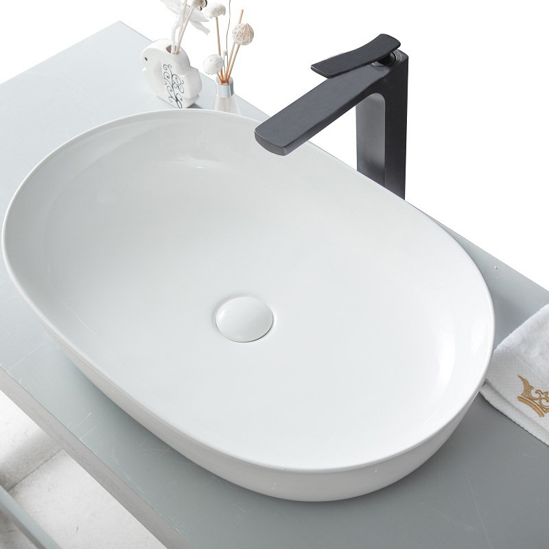 Cette vasque à poser Ovale Meryl blanc brillant 60 cm est en céramique blanche, brillante, elle ne possède en revanche pas de trop-plein pour un côté plus design, vous devrez donc faire attention vous-même à ce que l’eau ne déborde pas.