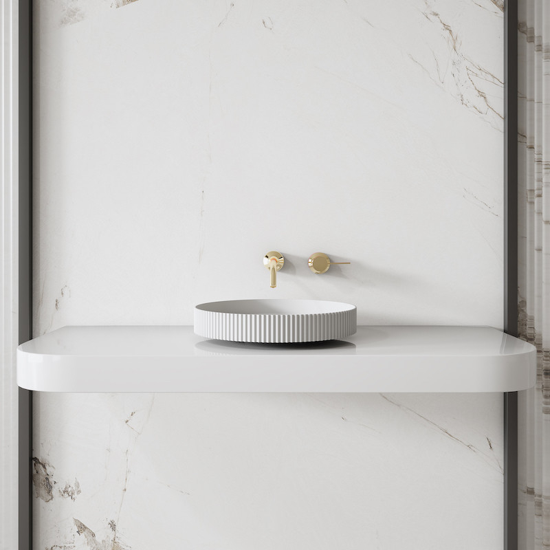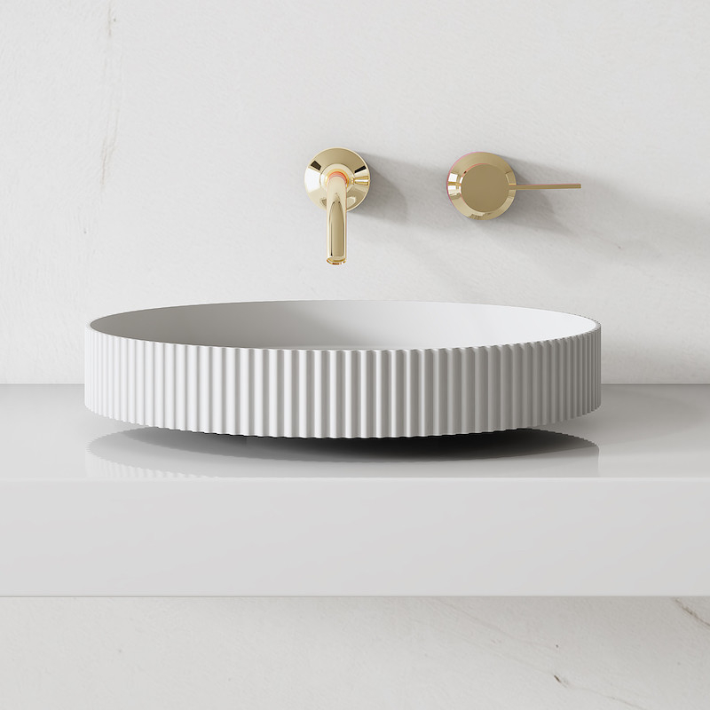 Cette vasque Plissée est fabriquée en solide surface, ce matériau composite haut de gamme résistant aux chocs, aux rayures et à l'usure quotidienne, garantissant une longue durée de vie de la vasque.
