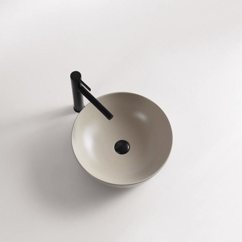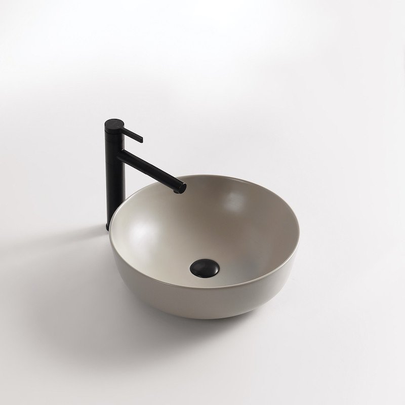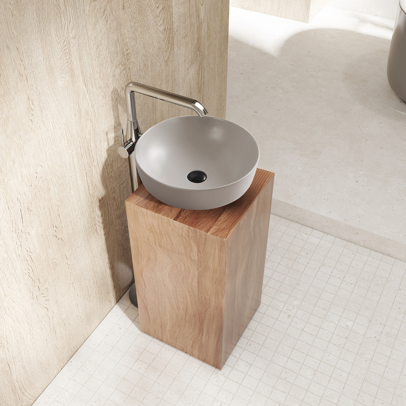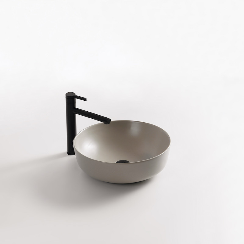 La finition mate de la vasque à poser Argillae ajoute une note de sophistication. Contrairement à une finition brillante, elle est non seulement douce au toucher, mais aussi résolument chic.