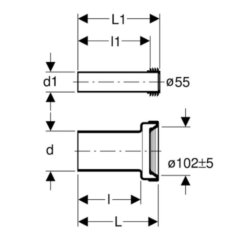 - dessin technique kit de raccordement pour wc suspendu longueur 18,5cm avec joint torique Télécharger