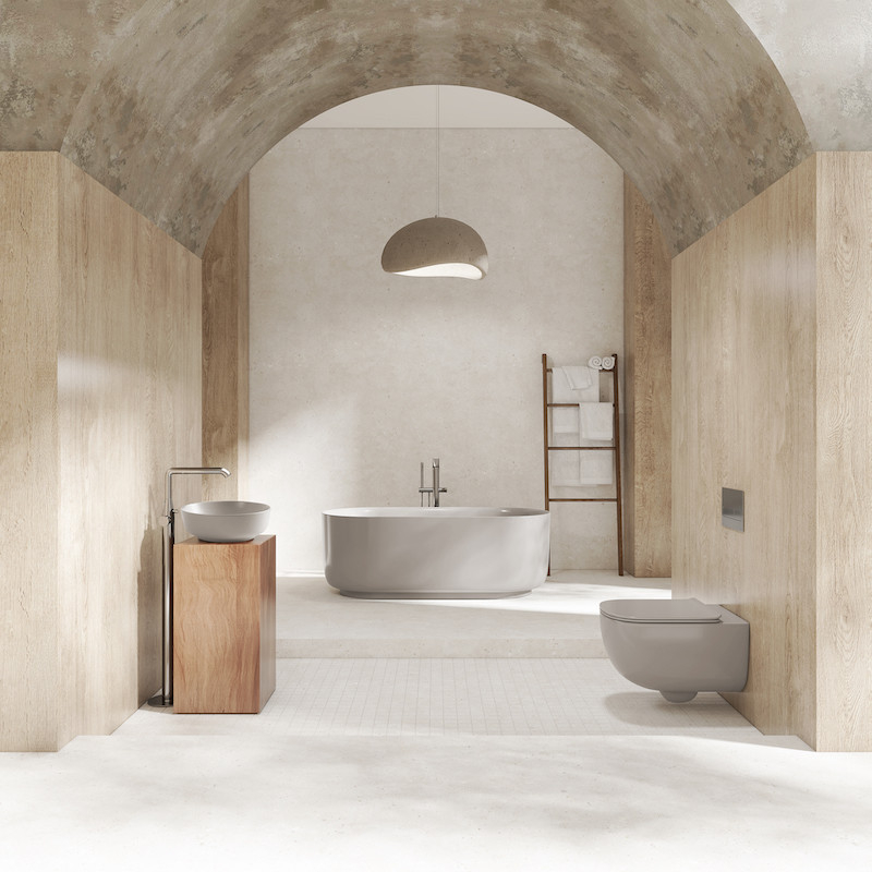 La cuvette suspendue Voga Argillae présente une teinte Terre d'argile mate, évoquant subtilement le beige, le marron et le gris.