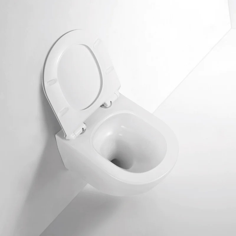 Cette toilette suspendue blanche est livrée avec son abattant soft close à frein progressif avec fixations Easy Clip, ses vis. Sa sortie de chasse d’eau est horizontale pour permettre son engagement dans le mur.