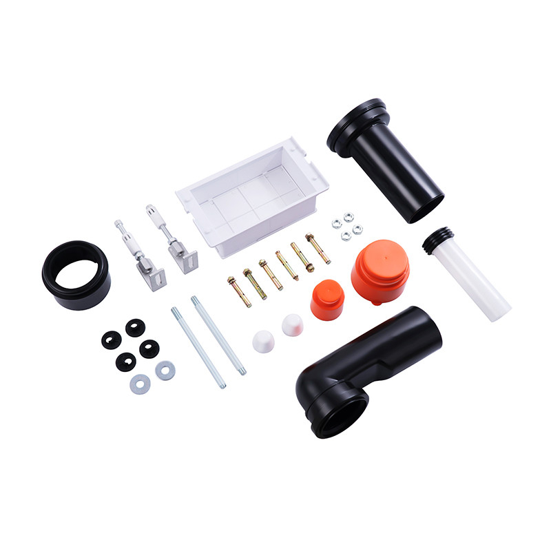 Le bâti-support de la marque Française O-Flush est doté de solides pieds autoportants et réglables, de 19,5 × 10 cm en acier inoxydable, assurant une stabilité remarquable en se fixant solidement au sol. Il s'adapte à divers types de cloisons, y compris les murs légers ou de séparation.